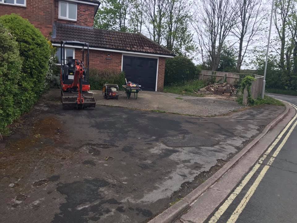 Full excavation and installation of new RBA surface. 200x100mm even drop sleeper retaining wall. 'Autumn Gold' perimeter decorative detail and 6mm Chestnut RBA finish.